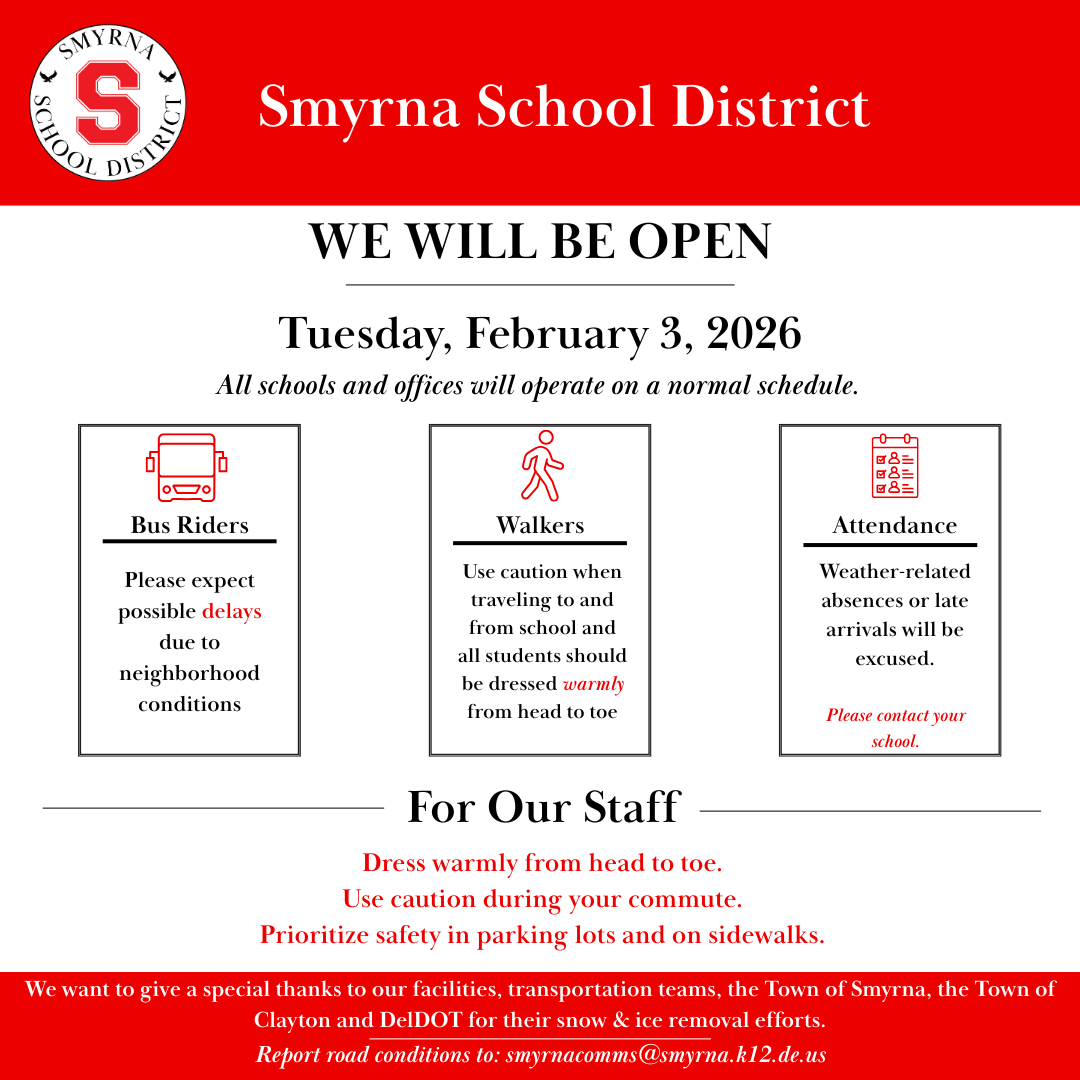 The Smyrna School District Calendar Committee has developed two draft calendars for the 2026–2027 school year and is seeking input from parents/guardians, staff, and students. Community feedback will help guide the committee’s recommendation to the School Board.